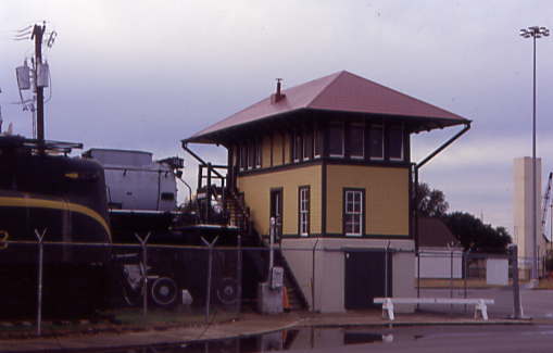 Gulf, Colorado & Santa Fe Interlocking Tower 19 is also on museum property. It was built to a modified Santa Fe standard plan in 1903 and equipped with General Railway Signal 103-function electric interlocker machine in 1952. The tower was originally located at the intersection of GC&SF and Missouri-Kansas-Texas Railways in South Dallas until being retired 1993 and donated in 1996.