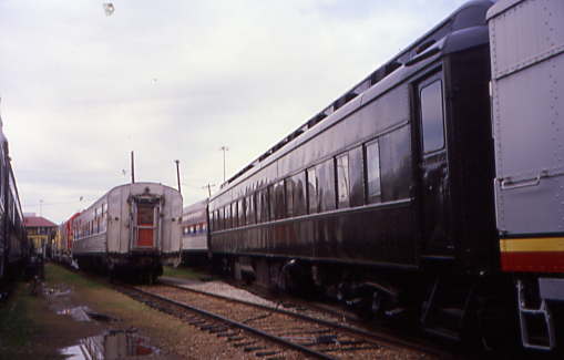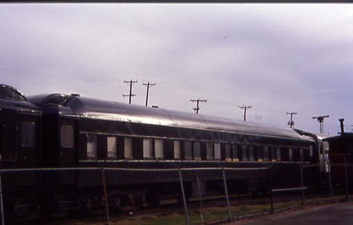HWCR research car 1, nee Pullman 6 compartment-3 drawing room sleeping car "Glen Nevis" built by Pullman Car and Manufacturing in 1925, one of Pullman's most common all-room car and one of its most luxurious designs. It was purchased by Freight Masters Industries of Fort Worth and converted to a rolling laboratory for designing coupler cushioning devices. While it still has the external appearance of a Pullman sleeping car with a few of the drawing rooms retained, "Glen Nevis" was modernized with its own kitchen and generator so it could be self-sufficient while on the railroad. It was donated by the Freight Master division of Halliburton in 1997.