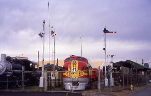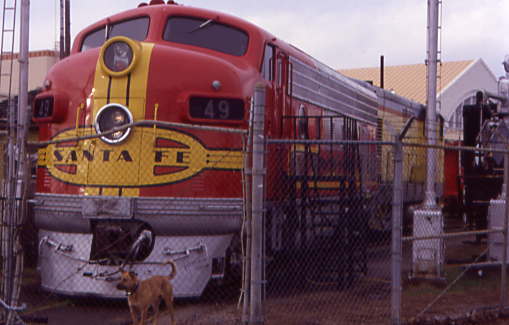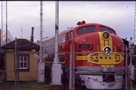 Beside it was Santa Fe F7A 49, nee Canadian National 9167 built by General Motors Diesel of Montreal, an Electro-Motive Division subsidiary, in 1952. Retired in 1989, itt was purchased by the museum in 2000 and repainted in the Santa Fe "Warbonnet".