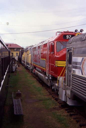 When Amtrak took over passenger services in 1971, the AT&SF FP45s were reassigned to fast freight service, repainted in the standard blue and yellow freight scheme and renumbered. Eventually, the units were repainted in a modified AT&SF "Warbonnet" and renumbered. 97 was the last in service and was donated to the museum by BNSF in 1999.