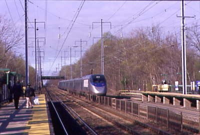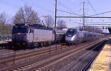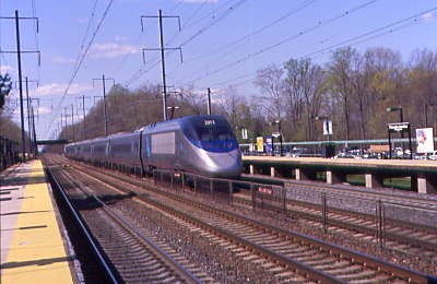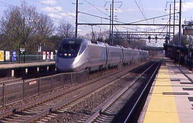 Acela Express 2153 from Boston to Washington, passing the Pennsylvanian at track speed.