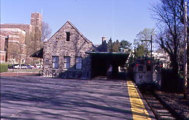 I walked from the south end of the east platform down a sidewalk to the station, through a tunnel under the four tracks, then up a hill to the waiting train. I learned that this service is locally called "The Dinky" or the "PJ&B", meaning Princeton Junction and Back. I asked the conductor about getting a ticket and she advised me to ride to Princeton and purchase my ticket there so I boarded car 1326. The tracks made a right turn before heading northwest with a few slight curves. We crossed Stoney Brook with Carnegie Hall to the east before entering the campus of Princeton University then stopped at the stone station located on University Place.