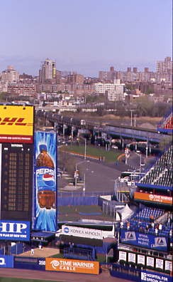 The view from my seat of the subway station with a train approaching. It was a really windy late afternoon and early evening, so jacket weather for the baseball game. I enjoyed two hot dogs and a Mountain Dew since Shea Stadium serves Pepsi.