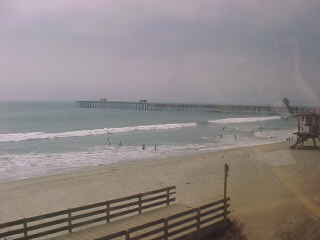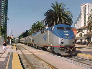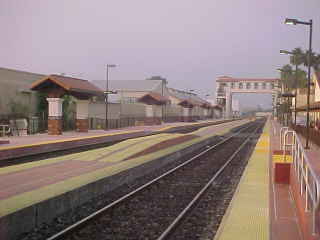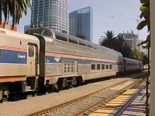 The San Clemente Pier. Further on, I pointed out the grading between CP Flores and CP Puller for that future double-tracking. We met Coaster 639, deadheading to their shops at Stuart Mesa at CP Westbrook then just before Oceanside, we met Pacific Surfliner 579 then did our station work. As we departed, Steve saw the grading for the Sprinter line into Oceanside, then further south, the new bridge at Agua Herronda Lagoon. We stopped at Solana Beach then met Coaster 643 at Sorrento Valley and I called Steve's attention to the mainline between CP Moreno and CP Tecolate before arriving at San Diego seven minutes early.
