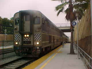 This train arrived and we met Metrolink 683 after Tustin, then at Laguna Niguel, met Metrolink 607. At CP Serra, Pacific Surfliner 763 was passed then later, after paralleling a cloudy shoreline, met Metrolink 850 waiting at CP Songs. At CP Westbrook, was Pacific Surfliner 565 then the station stop at Oceanside, aftre which, at CP Craven, just short of Solana Beach, we met Coaster 633 before I detrained and walked over to Track 2.