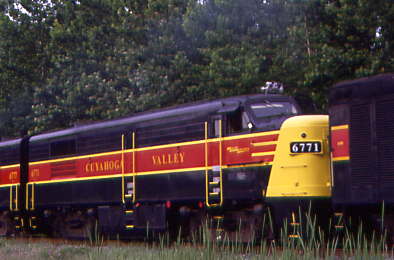 Cuyahoga Valley Scenic Railroad FPA4 6771, ex. Cuyahoga Valley Scenic Railroad 15 2003, exx. VIA 6771 1990, nee Canadian National 6771 1978, built by Montreal Locomotive Works in 1958. It was lettered Western Maryland 305 from 1990 to 1983 operating out of Cumberland, Maryland and was repainted in Delaware and Hudson livery in 1993.