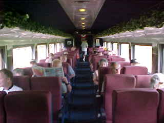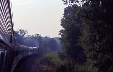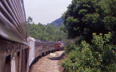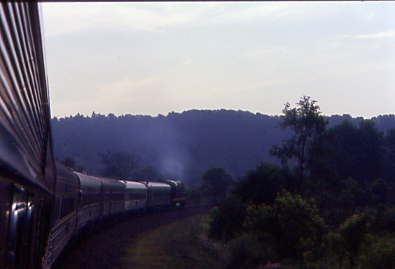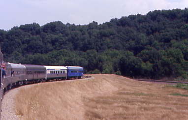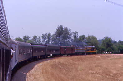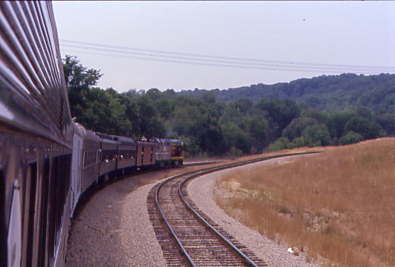 At 8:07 AM, we boarded and I selected seats for Chris and I in Pennsylvania Railroad air-conditioned coach RPCX 101, then walked back to the concession car, where I ran into Jim Bergant from Louisville, Kentucky. We departed at 8:30 AM and just east of the station, I spotted Joe Harper for the first of many times today. He does get around!
