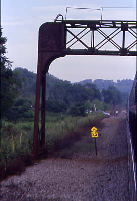 Passing underneath one of the remaining Pennsylvania Railroad signal bridges.