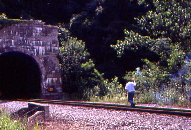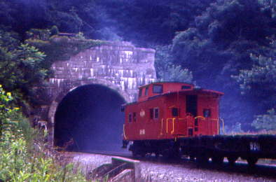 The photo freight was inside the tunnel and our conductor tried to radio him, but without success, so he used a flare to gain the crew's attention to start forward for the freight train photo runby.