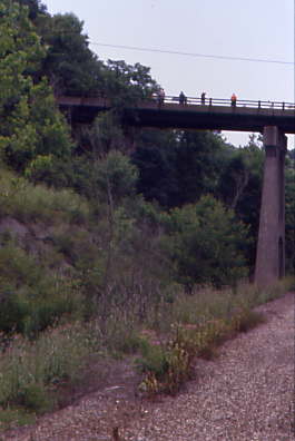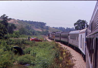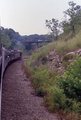 Later, while passing through a deep cut, our train went under a bridge full of chasers.