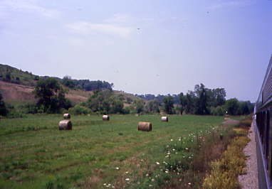 We passed a field with hay stacks and yes, there was a railfan standing on the last one getting his unique picture.