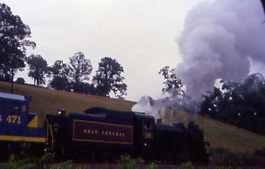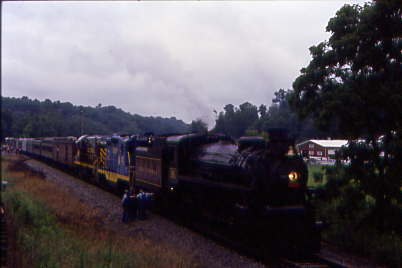 Ohio Central 1800 returned to our train and pulled it forward so we could detrain for a double photo runby, after which it reversed.