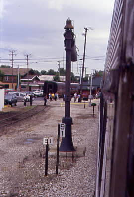 After Ohio Central 1293 cut off our train and reversed into a siding, we moved forward with 471 and 1800, passing the water plug that the steam engine used back in the excursion days.