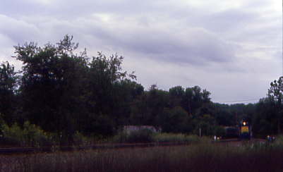 Ohio Central 1293 took us out of Morgan Run northeast and I said goodbye to Morgan Run on a very wet day so far. A photo runby was announced for a few minutes later, so everyone prepared and upon arrival at a farm crossing, we all detrained, many with umbrellas. The photo line would be the edge of Ohio Highway 93.