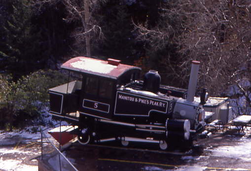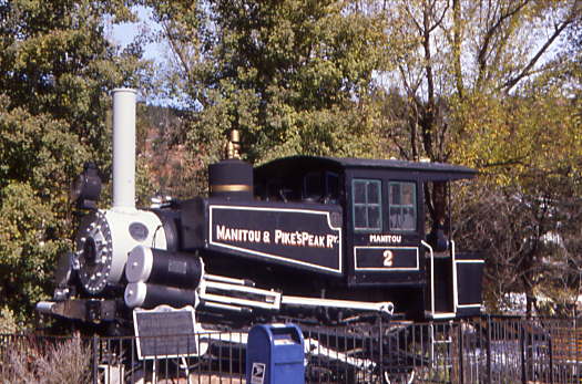 Manitou and Pikes Peak Railway 0-4-0T cog 2 "Manitou" built by Baldwin in 1901 on display at the depot. We walked down the parking lot to the station.