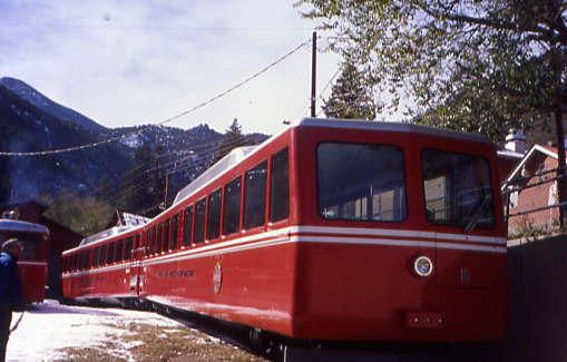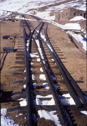 As an adjunct to the arrival of the first big Swiss railcars, new switches were installed along the line. Prior to 1976, trains departed the Manitou Depot only three times a day in the summer. The equipment needed to transport the passengers at the depot was brought down from the shop, loaded up, and arrived with the train at the summit. With the addition of new sidings at Minnehaha and Windy Point, trains can now run up to eight times per day and pass along the line. Now, trains depart in mid-summer, every eighty minutes, from 8:00 am until 5:20 pm.
