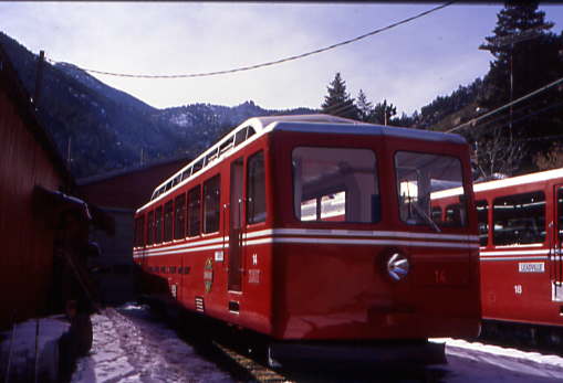 The modern age of the Manitou & Pikes Peak Railway began with the requisition of railcars from the Swiss Locomotive Works in Winterthur, Switzerland. In the early 1960's, as tourism began to increase in Colorado, the Railway needed additional equipment, but the General Electric Company was not interested in the project. With that in mind, Mr. Thayer Tutt, President of the Railway, traveled to Switzerland to arrange for modern railcar acquisitions. The first units to arrive from Switzerland were Nos. 14 and 15, which were put into service in 1964. They proved so successful that soon after, the Railway ordered two more nearly identical units, Nos. 16 and 17. These Swiss railcars are self- contained units, powered by two Cummins diesel engines mounted underneath the seating area. As with the GE locomotives, they are diesel-electric trains. Generators driven by the diesel engines provide the power to traction motors for the ascent. For the descent, the diesel engines are shut down and the traction motors work as generators. Heat is disippated by resistor banks on the roof of the railcars.