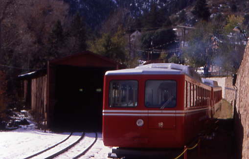 The 8.9 mile standard gauge line to Pike's Peak was built as a tourist-only line beginning in 1889, with a limited service to the Halfway House Hotel completed by 1890, and the 14,110 foot summit was reached the following year. The Manitou Incline was built in 1907 to construct city water lines and a hydro-electric plant, after which, the M&PP took it over as a funicular incline. The lower terminus was next to the Cog Railway station in Manitou Springs, but the line was closed by a rock slide in 1990 and has not reopened.
