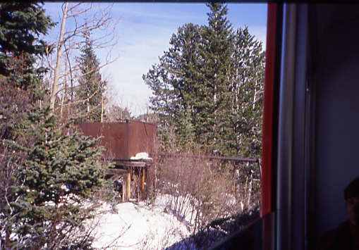 An old section house. While we waited for the short train to leave, I asked the men in the first seat by the front window if they wanted to ride forward going back down and Chris and I would switch seats with them, since I wanted to photograph from the front or rear. Soon Chris and I were seated in what would become the rear of our train, but first we would try to go further up Pikes Peak.