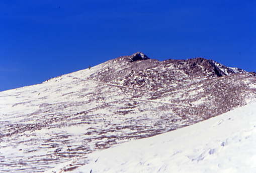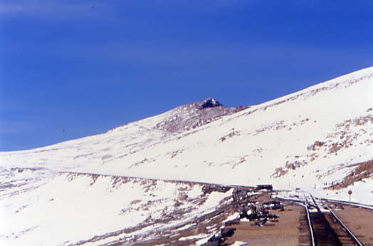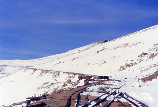 Snow PloughsIn the early days of the Railway, snow was a huge problem. On Pikes Peak, most of the snow falls in spring and the Railway cannot fully open until the line is cleared. Snow removal used to be a lengthy and exhausting task involving little more than muscle power. A steam engine would ram a flat car outfitted with a wedge on its nose into the massive banks of snow that had been loosened by charges of dynamite. The section crew would then shovel as much additional snow as possible onto the flat car which would then back down to the nearest available opening. The "gandy dancers" would shovel off the snow, and the whole process would begin again.