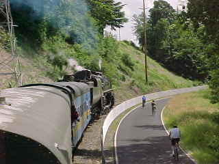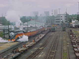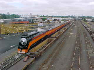 Present Day: In 1981, SP 4449 was returned to its original "Daylight" colors for the first Railfair at the California State Railroad Museum in Sacramento, California. In 1984, 4449 pulled an all Daylight-painted train from Portland to New Orleans, Louisiana and back, to publicize the World's Fair. The 7,477-mile round trip was the longest steam train excursion in US history. In 1986, 4449 went to Hollywood to appear in "Tough Guys", and pulled business trains for the Southern Pacific. No. 4449 had another famous moment in 1989 when 4449 and Union Pacific 844 made a side-by-side entrance into the Los Angeles Union Passenger Terminal in 1989 for the station's 50th anniversary celebrations. No. 4449 returned to Railfair in Sacramento in 1991 and again in 1999. In 2000, 4449 was repainted black and silver for a Burlington Northern Santa Fe employee appreciation special, then was repainted into the American Freedom Train colors again in early 2002 after the events of the September 11th terrorist attacks. In 2004, the locomotive was returned to Daylight colors again, this time in its "as delivered" appearance.