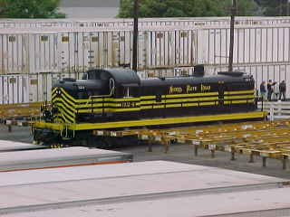 Nickel Plate Road RSD-5 324 built by American Locomotive Company in 1955 as Utah Railway 306. It was sold to Industrial Salvage & Metals in Salt Lake City in 1983 and traded to the Promontory Chapter, NRHS, for scrap value in seven donated former Kennecott locomotives in January 1984. It was stored here until sold to Doyle McCormack in October 1993, painted as a fictitious Nickel Plate 324 by February 1994 and leased to Willamette & Pacific.