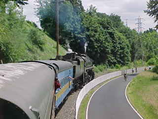 Southern Pacific 4449 and train passed the North Shore Drive grade crossing. Satisfied with our results, we drove to Oaks Park for our next steam train encounter of the day.