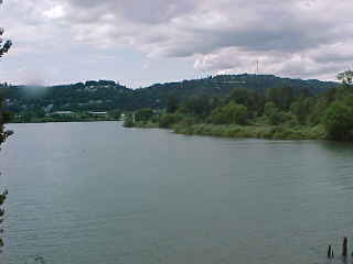 Ross Island Bridge was opened in 1926 to accommodate Portland's burgeoning private automobile traffic. It was designed by Gustav Lindenthal of New York City and, like his Queensboro Bridge across the East River in NYC, it is a semi-continuous cantilever structure. There are steel truss anchor arms connected to points on shore, but there is no central suspended span connecting them. Instead those anchor arms support truss panels which project out (cantilever) from piers to the center. While it is not an arch bridge as many may think, it is an aquaduct which many do npt notice. Two 24-inch mains on the bridge convey millions of gallons of water from the Bull Run Reservoir east of town to Portland’s west side.