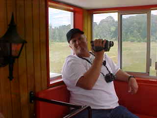 Today's consist was SP&S 4-8-4 700, Pacific Railroad Preservation Association combine 9477, Great Northern Empire Builder coach 1210 "Plum Creek" PPCX 800245 and Samtrak caboose 900. SP&S 700 then reversed into the loading area and the noon passengers detrained before the 1:00 PM passengers boarded. Jim and I chose cupola seats in the caboose.