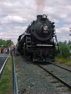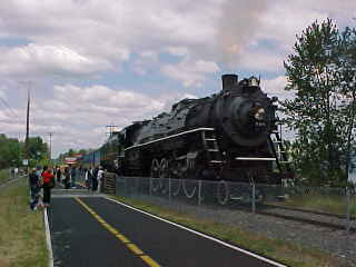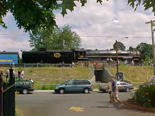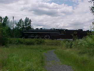 It was now 10:20 AM and we returned to the car and drove to Lake Oswego, where we found a nice grade crossing among the million dollar homes on North Shore Drive. Our presence there attracted all kinds of attention with people stopping to asking us what was coming. By that time, at 12:05 PM, we had a large crowd waiting for Southern Pacific 4449 and when the engine's whistle was finally heard, the crowd was excited and a few minutes later, Southern Pacific 4449 came into view and there was a smile on every face, both young and old!