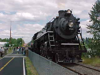 Spokane, Portland and Seattle 700 Train RideSpokane Portland & Seattle 4-8-4 700 built by Baldwin in 1938. It was acquired to haul the Inland Empire Express (daytime) and North Bank Limited (overnight) along the north shore of the Columbia River between Spokane and Vancouver. By 1947, the SP&S started purchasing diesels for their premier passenger services. Through the late 1940s and early 1950s, the E-1s continued to pull secondary passenger trains but by 1954, diesels had completely replaced steam for passenger service and the E-1s were relegated to pulling freight trains until 1955. Finally, on 20th May 1956, a spruced-up 700, with its normally grey smokebox painted silver, hauled its last passenger train, the Farewell To Steam with a twenty-one car consist carrying 1,400 passengers from Portland, Oregon to Wishram, Washington and back. After the Farewell to Steam trip, 700, along with other SP&S steam locomotives, were sent to the scrap line.
