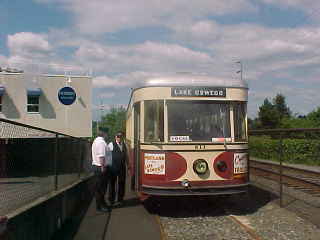 In 1984, the Southern Pacific filed for abandoning the line from Lake Oswego to Portland. A Consortium of local governments and agencies acquired the line to preserve it for future transit use. In 1987, the Willamette Shore Trolley was born. The first car on the line was Blackpool Double-Decker 48, operated by the Oregon Electric Railway Historical Society. Later, a different entity operated other heritage trolleys on the line. The OERHS took over the service again in 1995 with the double-decker and later with a Portland Brill Master Unit streetcar.