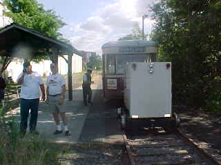 After leaving, we drove back to where I saw old streetcar tracks in the street. From there, we drove to Lake Oswego and bought tickets for the 4:00 PM run north on the Willamette Shore Trolley. Chris and I walked over to the Tillamook Restaurant for some food to go and ate it minutes before our trip was to start.