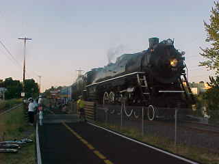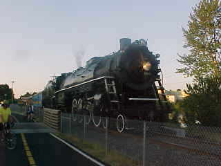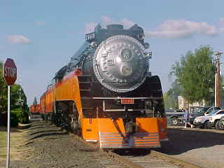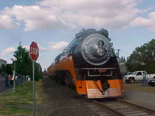Southern Pacific 4449 reversing to begin the journey to Cruisin' Sherwood, a custom car show.