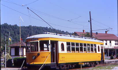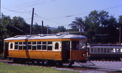 Car 162 and the other cars of its class spent most of their lives after their rebuilding in use on the Strafford Branch of the P&W, hence the nickname, Strafford cars. Following the abandonment of the Strafford Branch in 1956, the car was used primarily for short-turn local trips and especially during snow emergencies. Car 162 was the last car of its class in service when it was retired in 1990. It currently is not in service but is operable under its own power and will join our operating fleet of cars as time, money and volunteer effort permit.