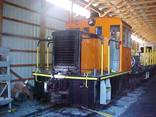 Daimler Chrysler (Adtranz) Rockhill 25 ton switcher M-25 built by General Electric Company in 1942 for use at a Hudson Motor Car plant at Centerline, Michigan. Information received from a Hudson authority in 2006 indicates this plant built 20 mm Oerlikon anti-aircraft guns for the Navy. (The Hudson Motor Car plant has sometimes mistakenly been thought to have built torpedo boats). Centerline reportedly had space for 20 rail cars on a 900 foot loading dock, so the loco was probably kept quite busy at its first home. Hudson lost the contract to operate that plant in October 1943; sometime around that date the locomotive was moved to the Naval Mine Depot at Yorktown, Virginia. Following World War II, it was sold to Tidewater Oil Company in Delaware City, Delaware. By 1972, it had been sold to the American Bridge Division of US Steel at Elmira, New York. While with AmBridge, the locomotive reportedly served during construction of the Interstate 81 bridge over the Susquehanna River at Harrisburg, Pennsylvania. It was used to shuffle loads of steel out onto the bridge for placement by a travelling crane.