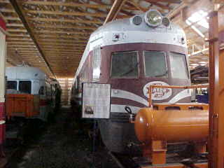 Liberty Liner 4-section articulated "Independence Hall" built by St. Louis Car Company in 1941. It is actually a four-car, air-conditioned interurban train which is permanently coupled together. The length of the train is 156 feet and was designed to be able to operate on the famous Chicago "L" picking up and discharging passengers. Both trains were designed for the North Shore line in an attempt to win back ridership from the competing Chicago Milwaukee, St. Paul and Pacific Railroad, as well as the personal automobile. At the time of their construction, the trains were the most modern interurban trains ever constructed.