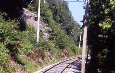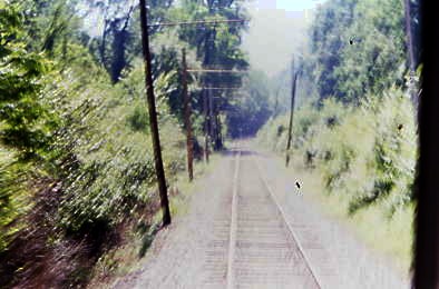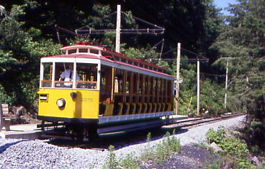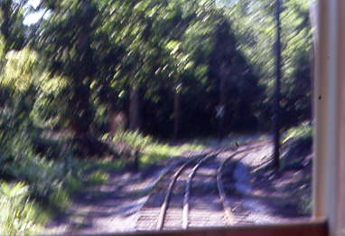 The car reversed out onto the mainline and came forward to pick us up for the safety run, to make sure the track and wire, and the car, are all working as they should.