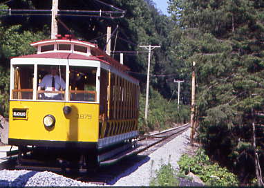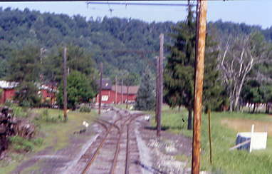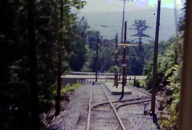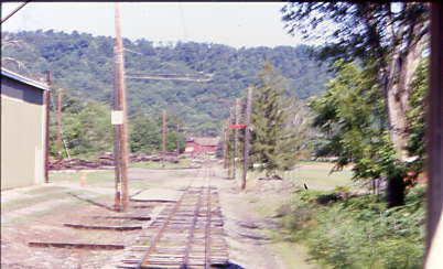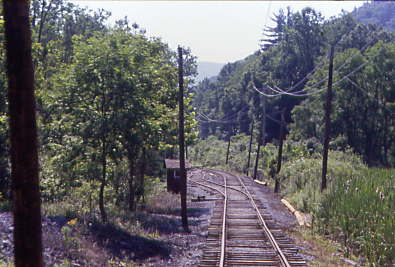 The trolley tracks follow Blacklog Creek on what used to be the Shade Gap Branch of the East Broad Top.