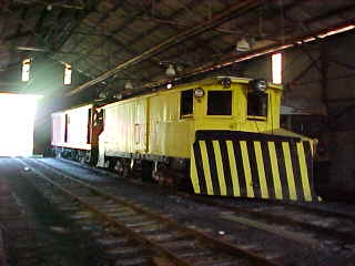 On the left is Philadelphia & Western snowplough 10 built by Wason in 1915 and used to clear heavy snows from tracks of the Philadelphia & Western Railroad. Known as a shear plough, car 10 pushed snow to the right side of the track only. Some ploughs were also built which pushed snow to both sides of the track. The ploughs of car 10 can be raised manually or pneumatically. It served its entire career operating on fourteen miles of track between Norristown and 69th Street Terminal in Upper Darby. It is believed the car may have occasionally been used to clear snow from the city streets of Norristown and the tracks of the Lehigh Valley Transit system as far north as Lansdale. Trolley plough 10 was in use until 1988 when it was acquired by our museum from SEPTA and was the last operating trolley snowplough on any American transit system. Since its arrival at the museum, it has had some woodwork done to the body, the entire car has been repainted and relettered, and it has received mechanical maintenance. It is one of few trolley snowploughs in existence today.
