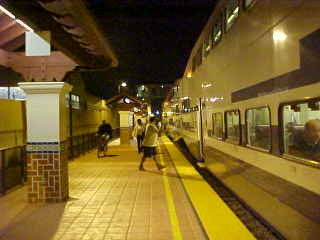 Pacific Surfliner 582 arrived first and it felt weird standing in the middle. All it would take for an accident is for someone to trip or get pushed down onto the tracks as the train arrived. 7/11/2006