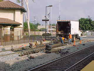 The truck on the track carries the supplies and equipment the workers need. Here they are welding the rails back together. 10/8/2006