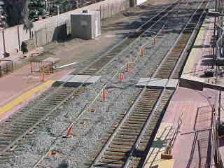 The new bridge and east platforms at the south end of the station. 4/8/2006