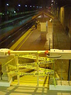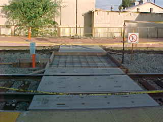 Work occuring to replace the former walkway with a true station platform; the middle platform will be removed once our east platform is complete. 8/16/2006