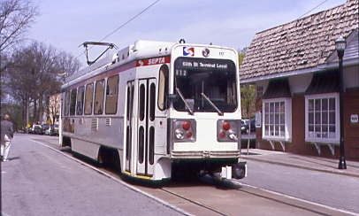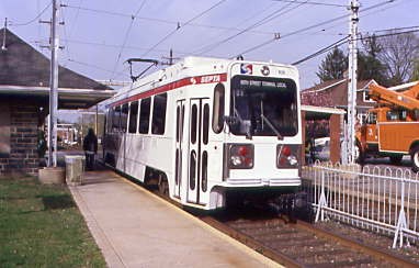 SEPTA Route 36 Trolley LineI boarded car 9012 to take me from Philadelphia to Eastwick. We stopped at 19th, 22nd, 30th, bypassed 33rd, 36th and 37th Street stations, which are all below ground. At 40th Street Portal, there was a major trolley junction with Route 34 to Angora leaving, then a block later, Route 13 for Yeadon took off. On Woodland Avenue, we went to 49th Street, where we turned left, diverted from Route 11 and were now on our own route, soon crossing the Northeast Corridor. We turned south down Lindbergh Boulevard to Elmwood Boulevard, then went over the SEPTA Airport line and ran through some interesting neighbourhoods from the safety of the trolley. Our route passed the car barns before we turned left onto Island Road to the end of the route at the turning loop near Penrose Plaza Shopping Center near 80th & Eastwick.