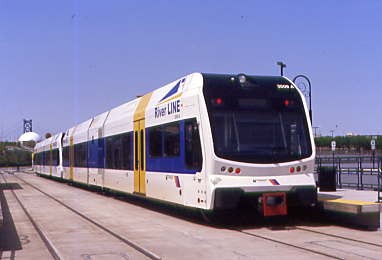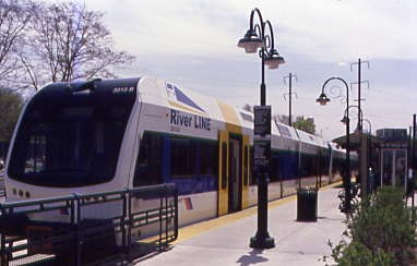 New Jersey Transit River LineThis route connects the cities of Camden and Trenton, New Jersey's capital, so-named because its route between the two cities is parallel to the Delaware River. The River Line was constructed on what originally was the Camden- Bordentown section and the Bordentown-Trenton Branch of the Camden & Amboy Railroad. The lines ran under the C&A name between 1830 and 1871, when the line was absorbed into the Pennsylvania Railroad. Ownership proceeded under Penn Central after 1968, and Conrail from 1976 to June 1, 1999, but the original passenger service had been abandoned in 1963.
