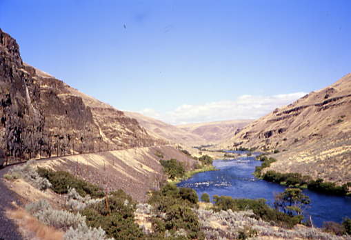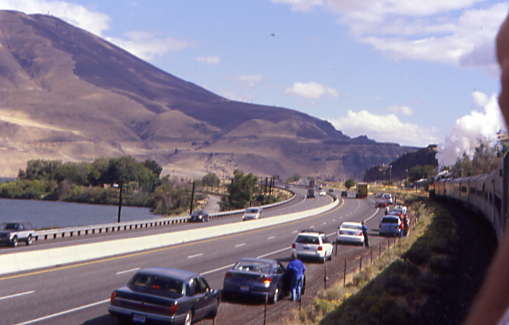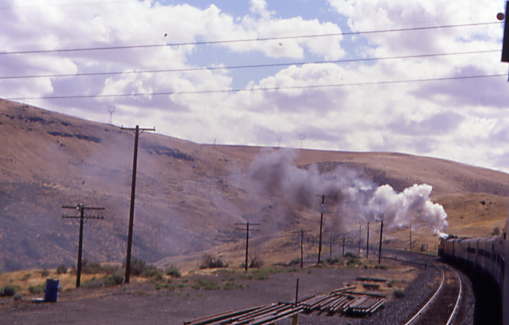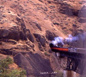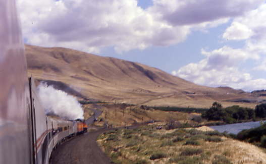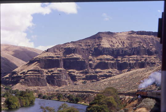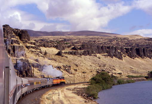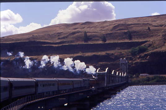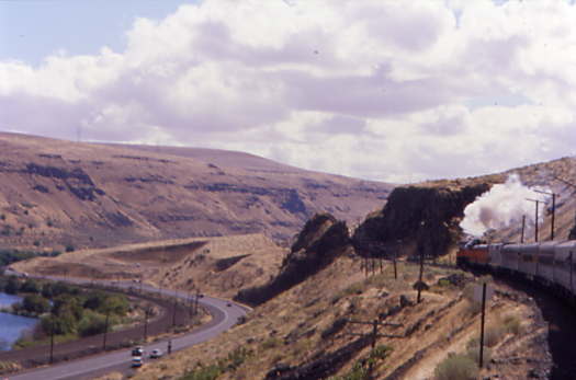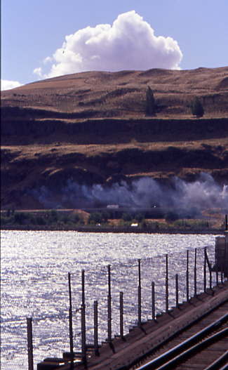 The steam train approached North Dalles and The Dalles Dam before passing Horse Thief Lake on the way to Avery.