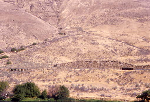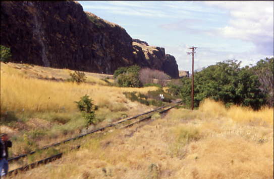 The grade that we saw on the opposite side of the river was of the former Deschutes Railroad Company, later part of the Oregon, Washington River and Navigation, then later part of the Union Pacific. It operated over this grade until March 28, 1936 when they abandoned their line for trackage rights over the Oregon Trunk. The Oregon Trunk, which was controlled by the Spokane, Portland and Seattle Railroad, became Burlington Northern in 1971 and today, is part of BNSF.