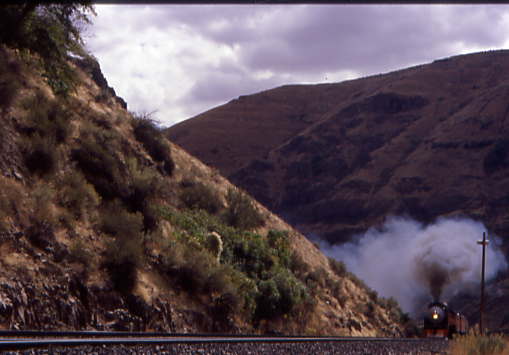 The locomotive was pulling hard on every curve in the canyon and sounded fantastic as it echoed off the canyon walls.