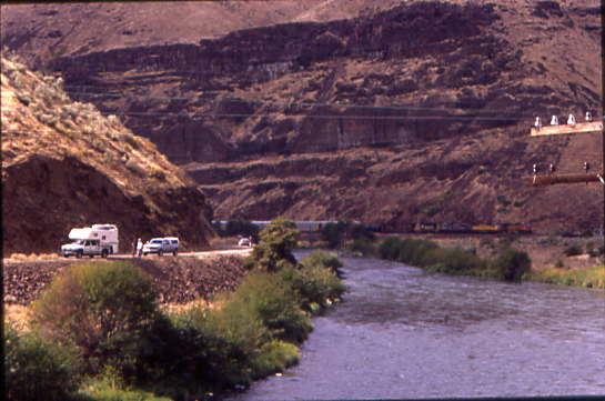 The rear of our train was still on Washington soil while we were over the waters of the river of the Columbia River.